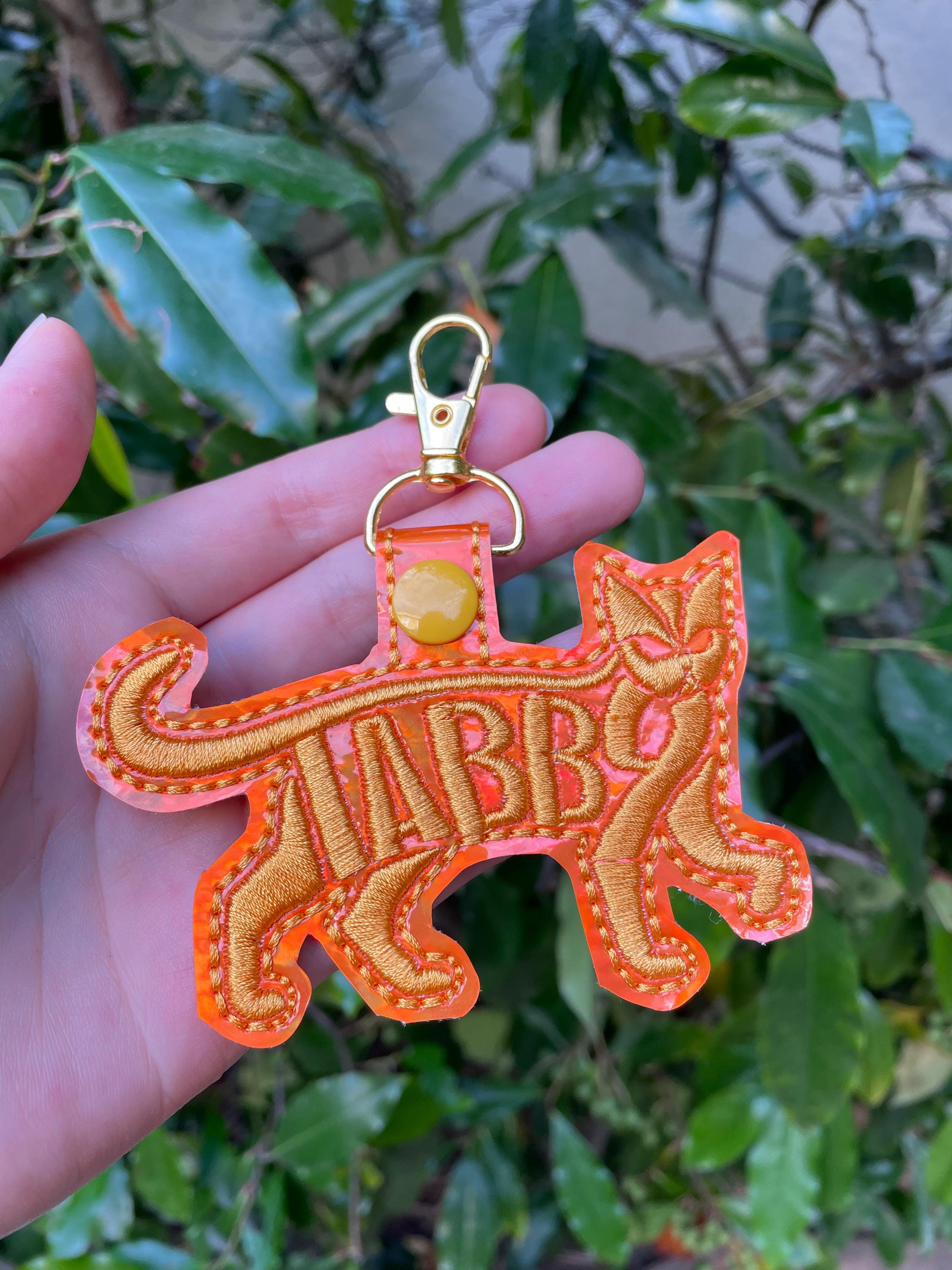 This Tabby Cat Text Fill Keychain 4 x 4 snap tab key fob embroidery design can be made using various materials such as: felt, vinyl, mirror canvas, leather, reinforced cotton, etc. on your embroidery machine. Snap tab/key fobs can be used as key chains, tags for your purse, charms for your children's backpack or even a zipper pull for their coat. It is a fun enhancement to a mobile phone or as an accessory for your daily planner. The ideas are endless. Snap tabs are perfect gifts for anyone, they have quickly become the best party favors. This a great item for your craft shows, vendor events and festivals. Kids love to collect them to decorate their backpacks and gym bags as a way to express themselves and show their interests.
