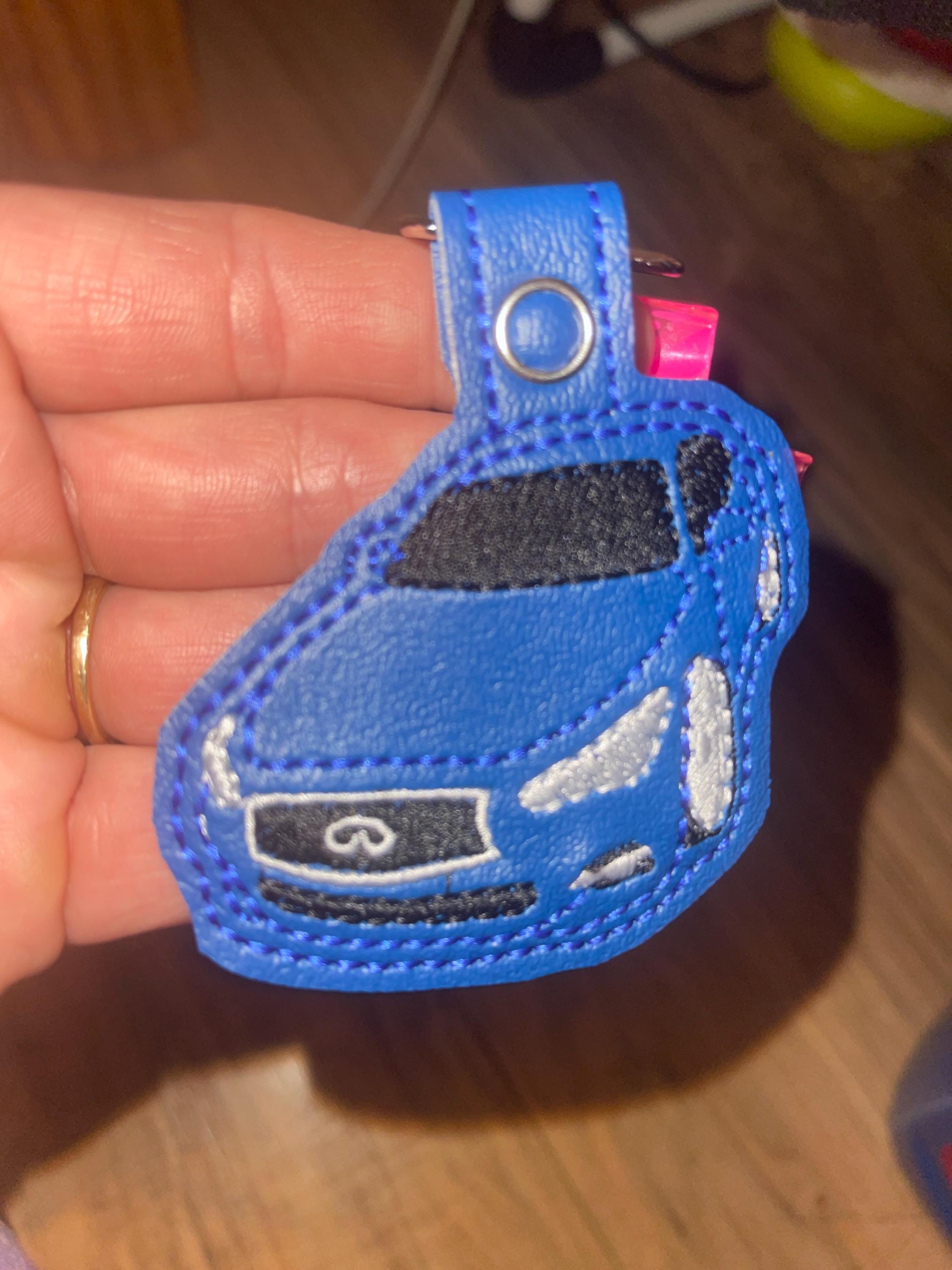 This Q50 car Keychain snap tab key fob features a custom embroidered design on marine grade vinyl. They use a snap tab and include the key ring. The keychains are approximately 3.5” in size. Vinyl and stitch colors subject to change upon availability.